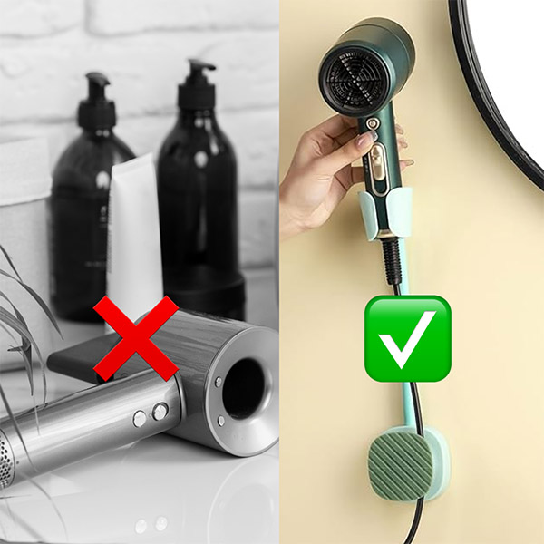 Păstrați baia fără dezordine cu această soluție montată pe perete, care economisește spațiu. Lipiți-l pe orice suprafață din baie și începeți să coafați – instalare fără deteriorare în câteva secunde! În plus, este compatibil cu 99% dintre uscătoarele de păr pentru confort total!