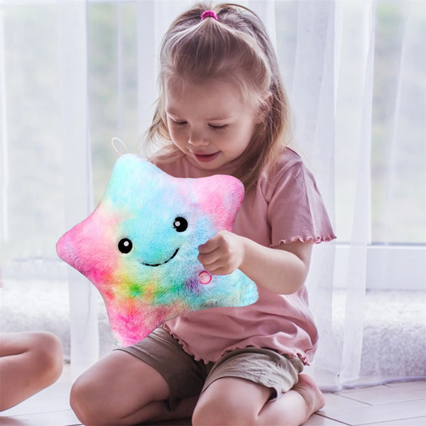 Această pernă drăgălașă și plușată nu este doar pentru îmbrățișare – este, de asemenea, o lumină de noapte strălucitoare și un decor fermecător pentru cameră.